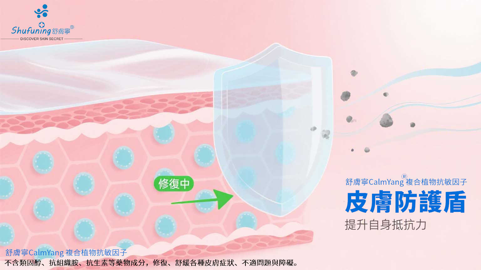 臨床數據顯示,使用含舒膚寧 CalmYangⓇ成分的護理修復製品後,多數皮膚炎患者的症狀在 2-4 週內有明顯改善,且長期使用有助於維持皮膚免疫穩定。