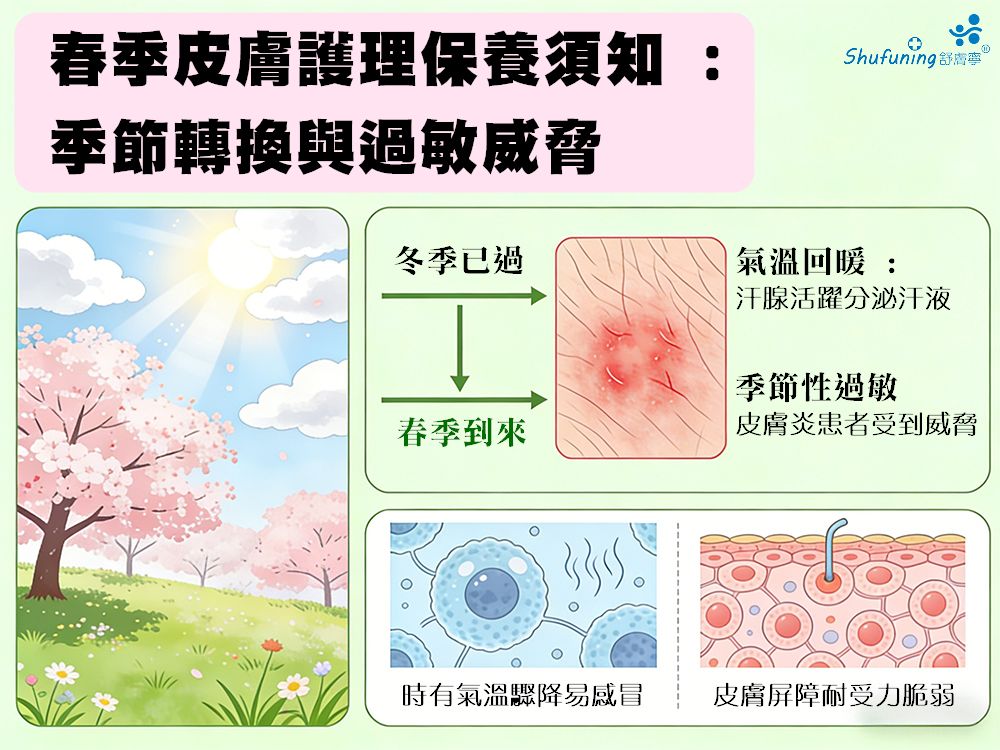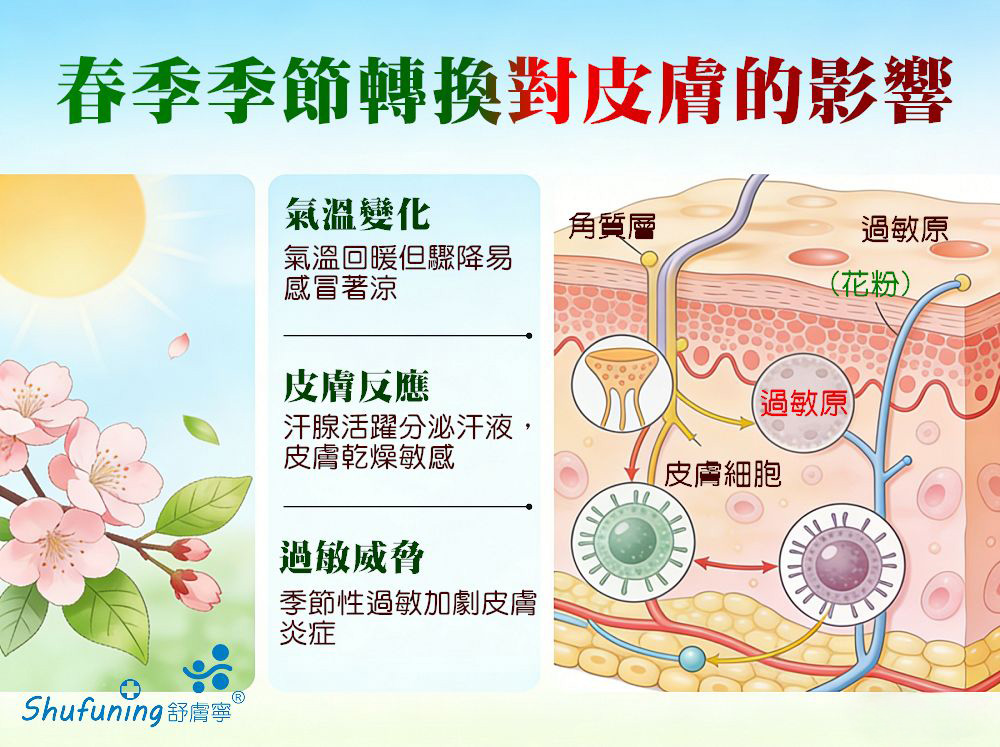 隨著冬季已過,隨之宜人的春季到來,在台灣…季節的轉換,春天不僅帶來了氣溫的回暖和陽光的明媚,但有時氣溫的驟降也讓易感風寒讓人容易感冒著涼,而我們的最大器官 - 皮膚也會隨之發生變化。你或許可能已察覺到氣溫升高所帶來的一些細微變化,或者汗腺開始活躍分泌汗液。但是,你知道季節性過敏也會對你的皮膚產生影響及對有皮膚炎的患者是一種威脅嗎?