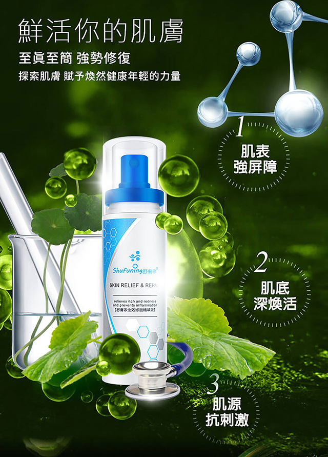 大自然草本複方植萃的舒膚寧®修復護理保養系列,富含高濃度複合草本植物抗膚敏修復因子(ECOCERT+專利)多種植物組成的草本製劑,不僅能恢復皮膚平衡狀態,深度修復皮膚屏障功能,有效舒緩皮膚,減緩復發。草本複方成分溫和不刺激,吸收滲透迅速,無黏膩感,有效將成分攜帶至皮膚角質層,保護問題肌膚。